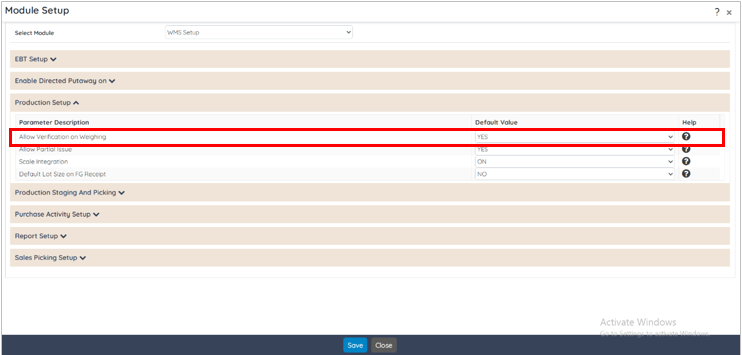 The Module Setup screen is now enhanced with a new field Allow Verification on Weighing.