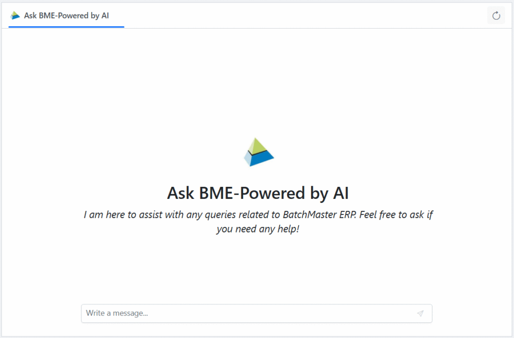 The AI-powered Ask BME Chatbot within the BatchMaster Web Application is now featured with a security enhancement to safeguard company data. To maintain secured usage of Chatbot, direct URL access (without login) is restricted outside the BatchMaster Web environment. This safety feature ensures that all the Chatbot interactions are authenticated and secured within the BatchMaster Web interface.