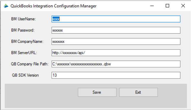 The utility also includes a QuickBooks Integration Configuration Manager for securely managing integration credentials and system paths. BatchMaster Web and QuickBooks connection details -such as user credentials, company context, server URL, SDK version, and QuickBooks company file path – are stored in an encrypted configuration file (QBFinanceUtility.exe.config). This centralized configuration supports secure authentication, reliable data exchange, and flexible deployment across environments without requiring application code changes.