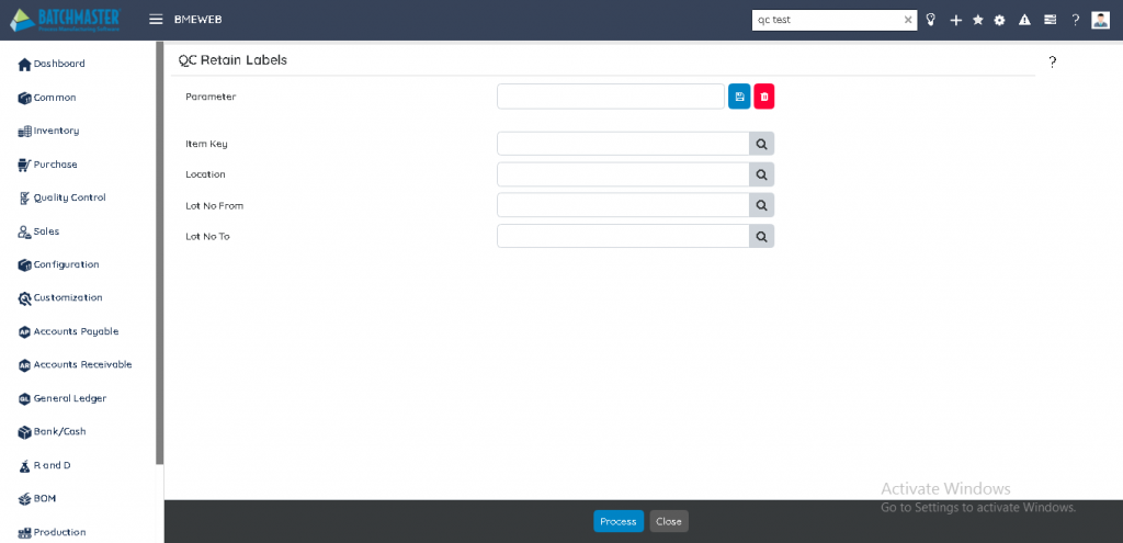 | 3 | QC Retain Label Reports | QC Retain Label |