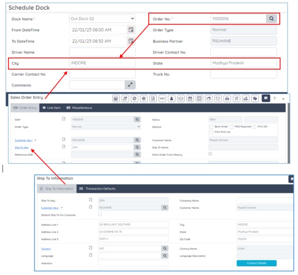 2.         Dock Scheduling: Modification on the Schedule Dock window functionality The City, and State fields defaults from the selected Order No. Accordingly, the changes are applied on the following dashboards: